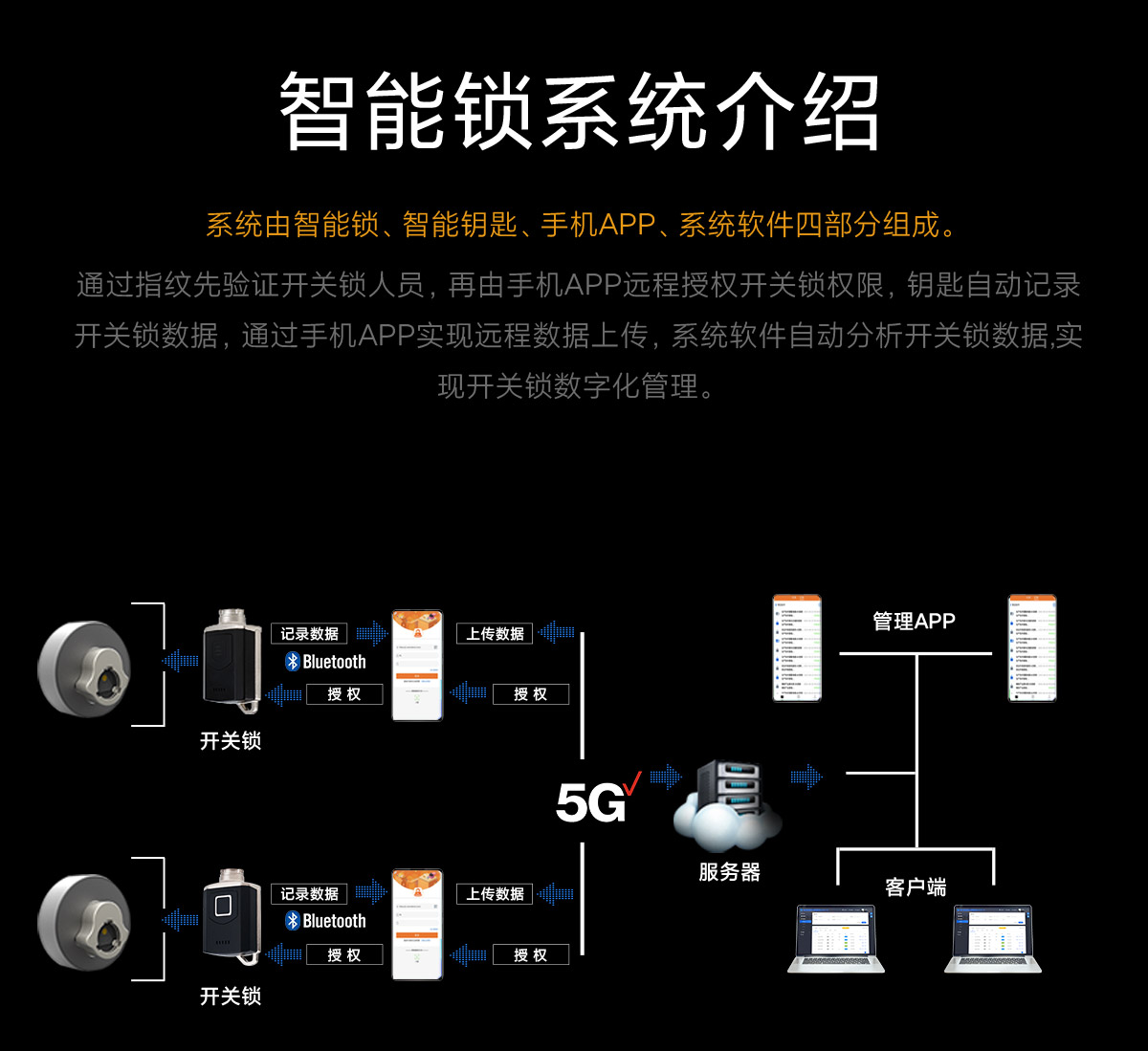 通過(guò)指紋先驗(yàn)證開(kāi)關(guān)鎖人員,再由手機(jī)APP遠(yuǎn)程授權(quán)開(kāi)關(guān)鎖權(quán)限,鑰匙自動(dòng)記錄開(kāi)關(guān)鎖數(shù)據(jù),通過(guò)手機(jī)APP實(shí)現(xiàn)遠(yuǎn)程數(shù)據(jù)上傳,系統(tǒng)軟件自動(dòng)分析開(kāi)關(guān)鎖數(shù)據(jù)。實(shí)現(xiàn)開(kāi)關(guān)鎖數(shù)字化管理。